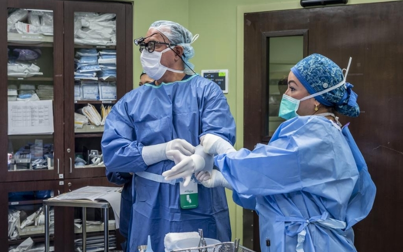 Dr. Alejandro Badia and his team preparing for a specialized upper limb surgery in the operating room