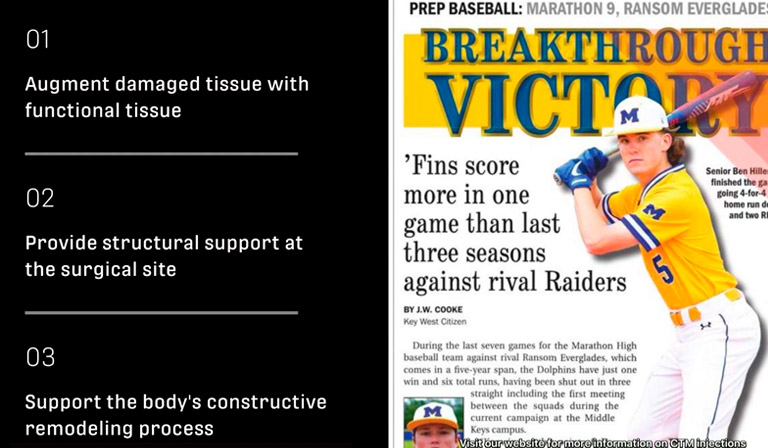 Un prometedor jugador de béisbol está de vuelta en el campo celebrando una gran victoria, tras una lucha de un año contra una debilitante [lesión]...