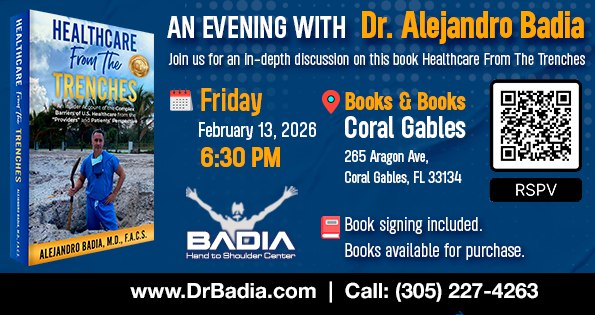 Le invitamos a participar en un diálogo constructivo con el Dr. Alejandro Badía sobre el estado actual y los desafíos del sistema de salud en los Estados Unidos, basado en su obra Healthcare From The Trenches.