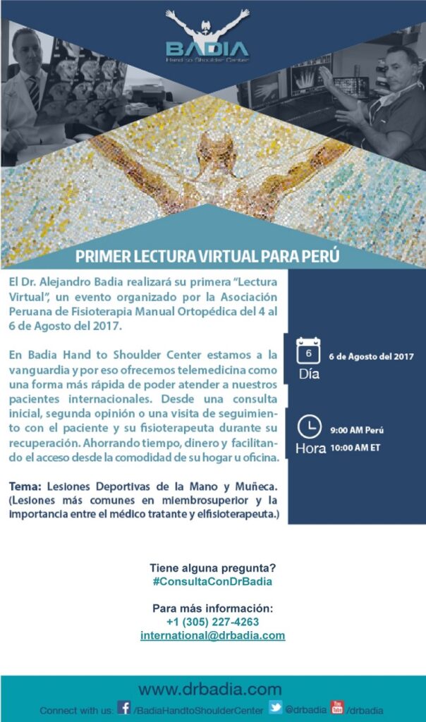 El Dr. Alejandro Badia realizará su primera “Lectura Virtual”, un evento organizado por la Asociación Peruana de Fisioterapia Manual Ortopédica del 4 al 6 de Agosto del 2017