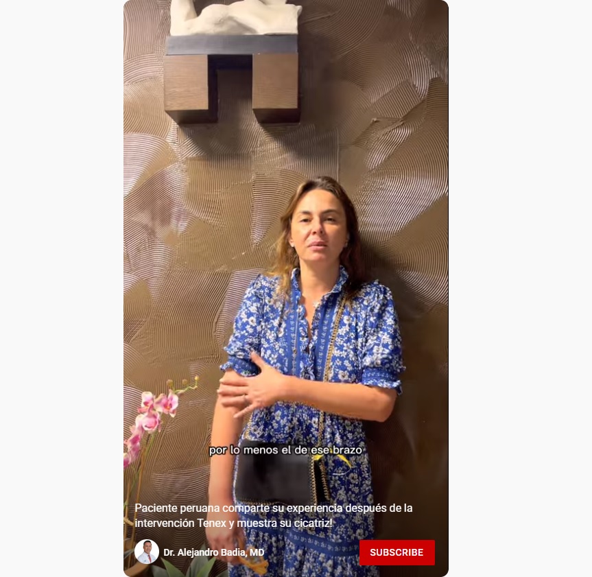 Cuando esta paciente viajó desde Perú en busca de una segunda opinión, estaba lidiando con dolor persistente por codo de tenista (epicondilitis lateral) que afectaba sus actividades diarias y su calidad de vida.