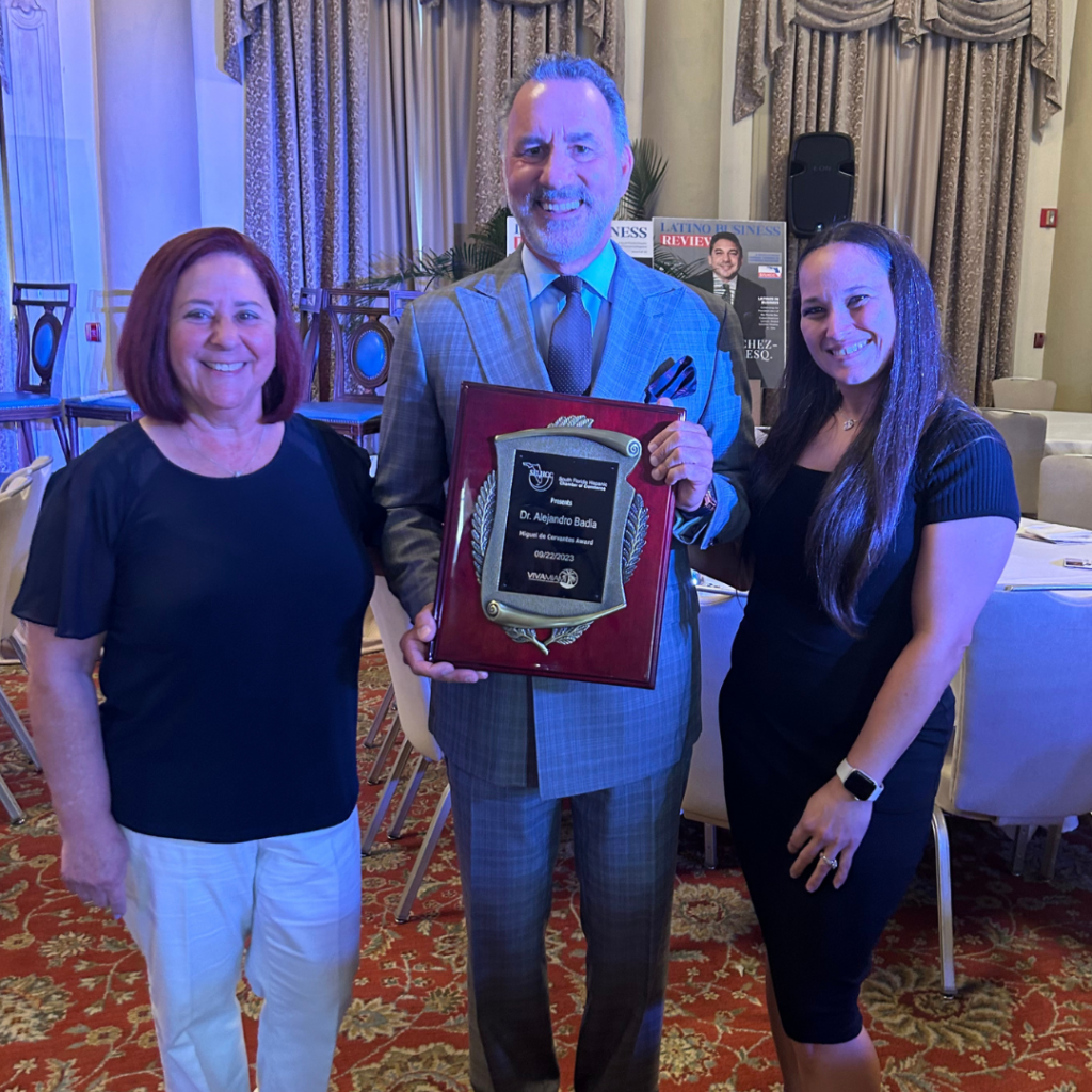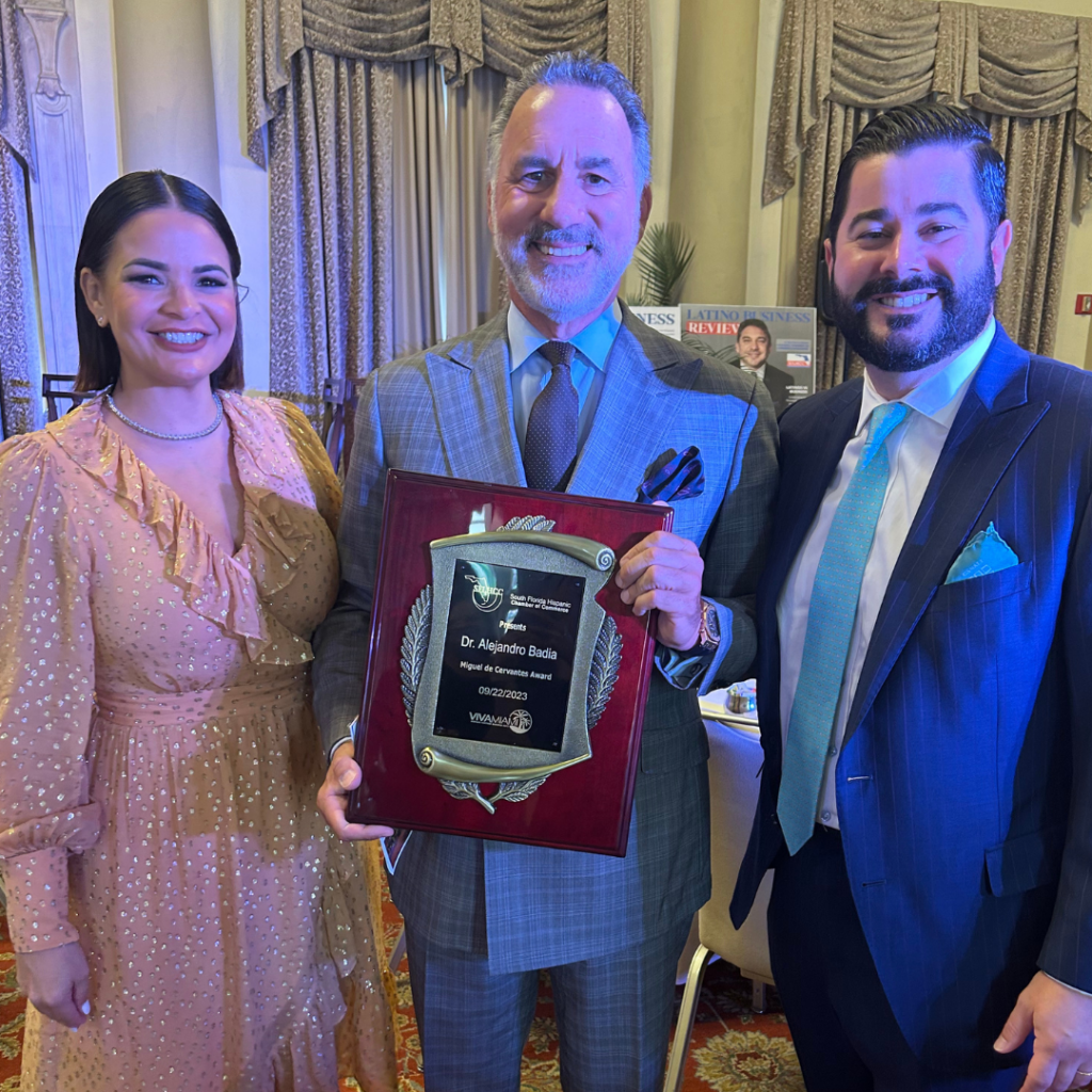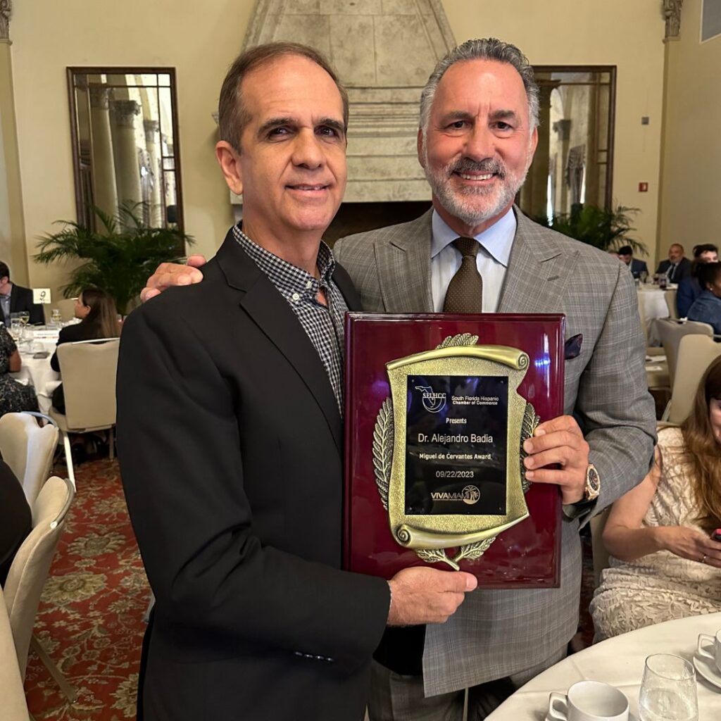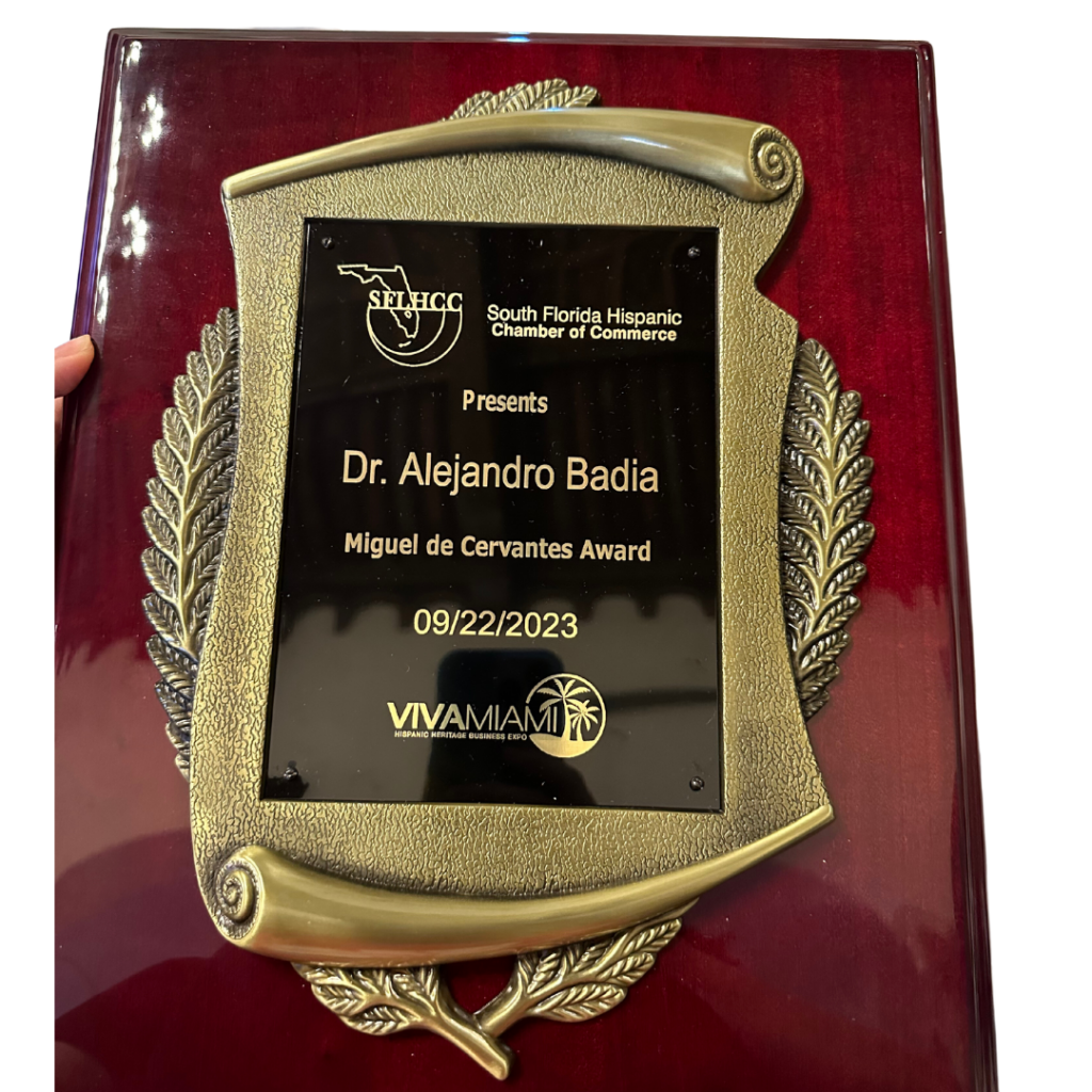 Dr. Badia was honored by the ” South Florida Hispanic Chamber of Commerce ” with the prestigious “Miguel de Cervantes Award” at the annual Viva Miami Hispanic Business Expo for his exceptional contributions to the Hispanic community.